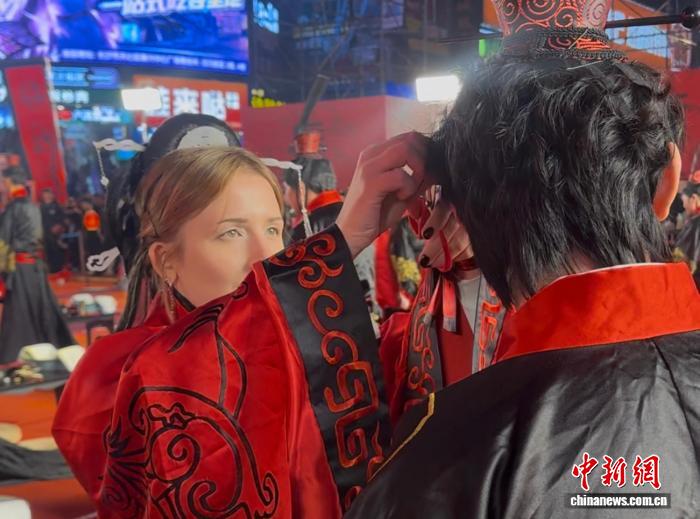 少沙11月30日电 (刘曼)第5届湖北汉式整体娶亲年夜典29日早正在少沙举办,37对于新秀身着古板汉服,循千年古礼许一生。